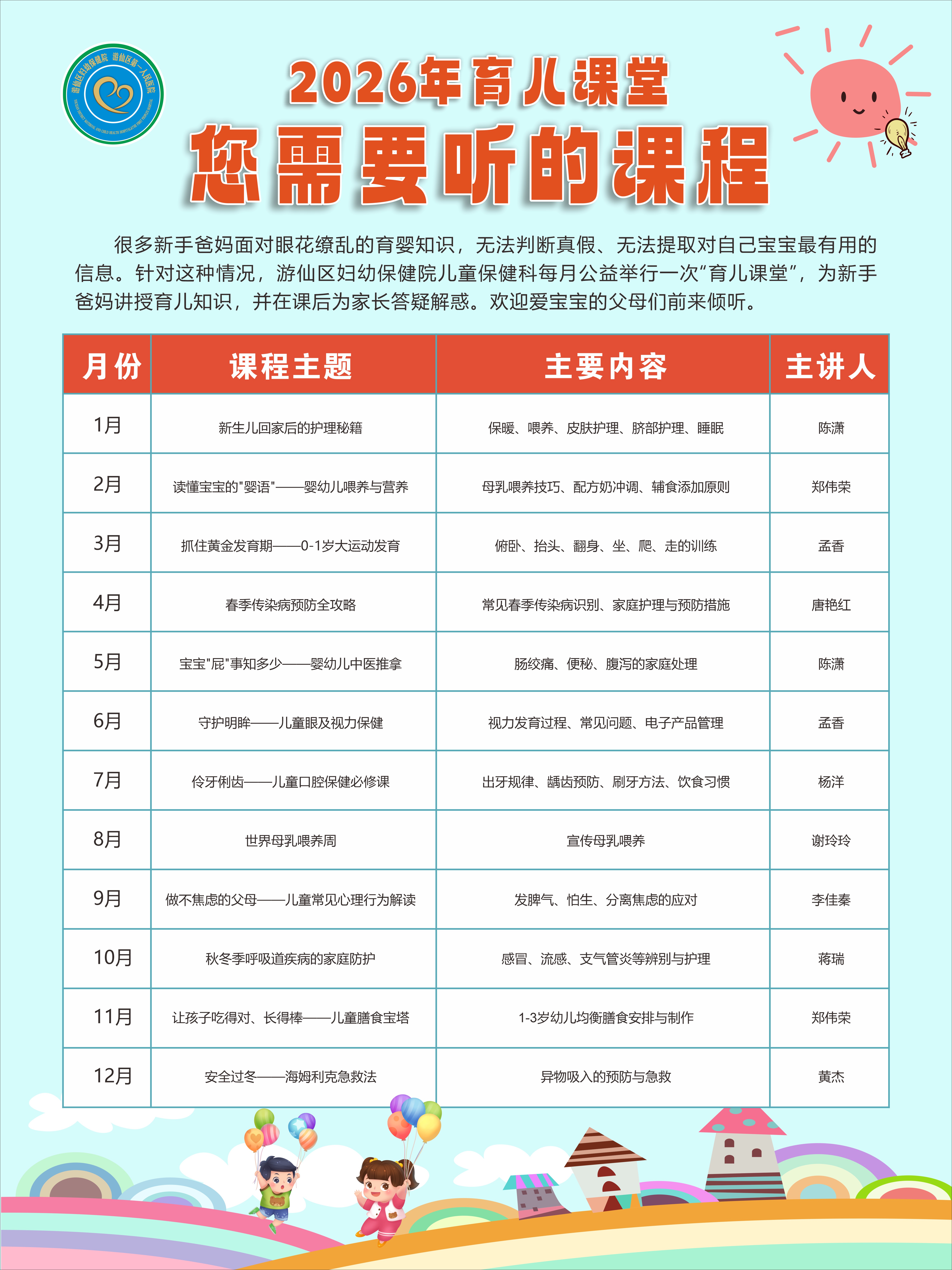 2026年育儿课堂课程表