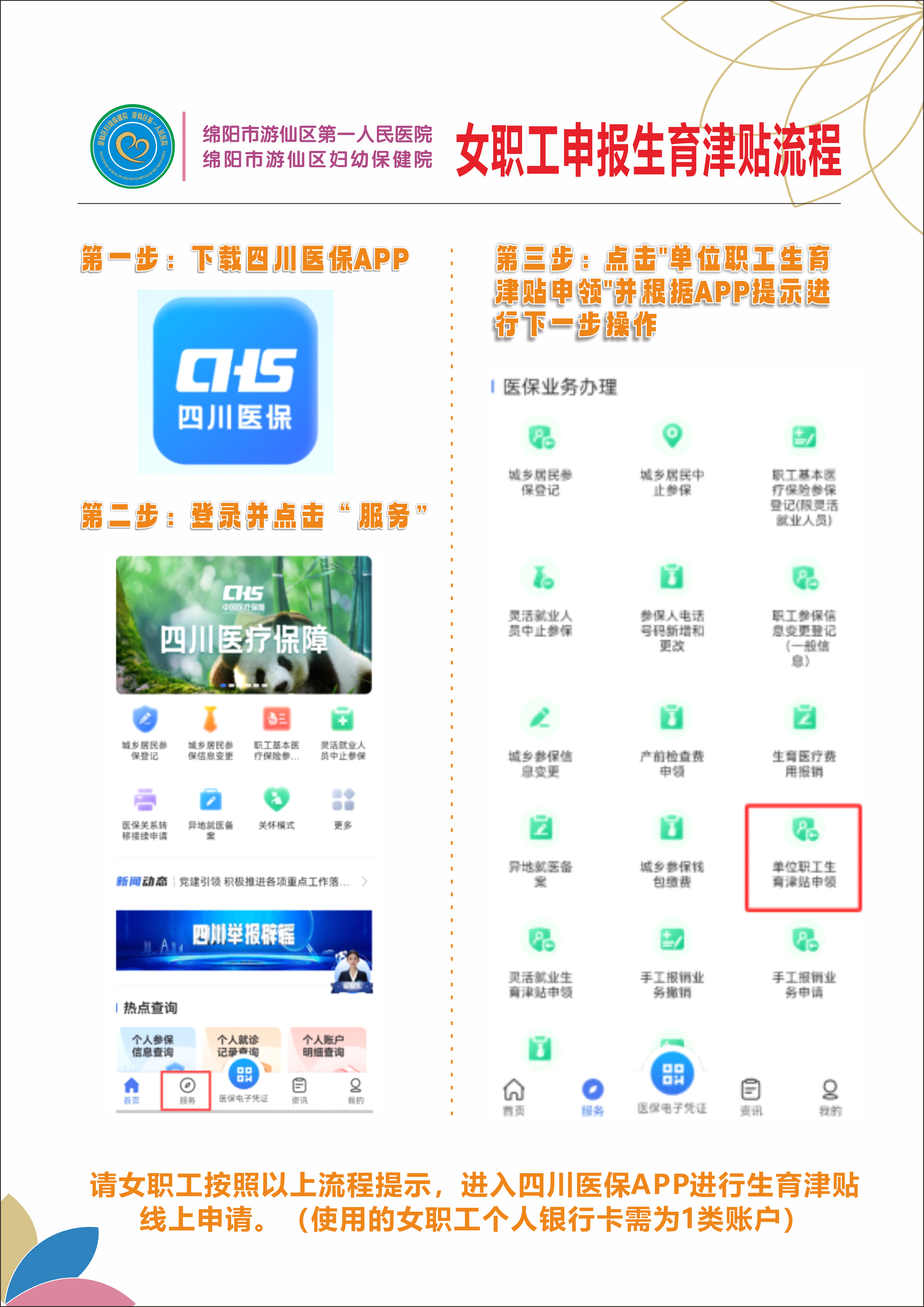 2025年9月1日起,绵阳市生育津贴按照程序直接发放至职工本人,符合生育津贴申领条件的参保职工可按照以下流程申领。